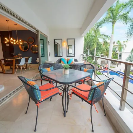 Colorful And Creative Modern Condo On Coco Beach Via 38 lägenhet på 125 m^2, där kan bo upp till 6 gäster, ligger i distriktet Centro, inom 20 minuters promenad från Portal Maya. Detta boende med 2 sovrum har också ett kök och 3 badrum.